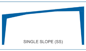 SINGLE SLOPE (SS) – This type of frames are the preferred choice when clients wants or has restriction to drain water of both sides of the shed. It is also chosen by clients in case their existing sheds require an expansion in width but is not designed to support the load of a lean to shed. In case these sheds are very wide then is becomes economical to make the same in Multispan