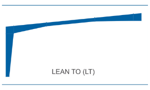 LEAN TO (LT) – This type of frame is the most preferred type, for sheds requiring an expansion along the width. It requires the original shed to be designed such that it is able to take the load of the expanded shed along with the new shed. Lean to sheds are designed to match the roof slope of the existing shed such that the water is discharged out of the shed.